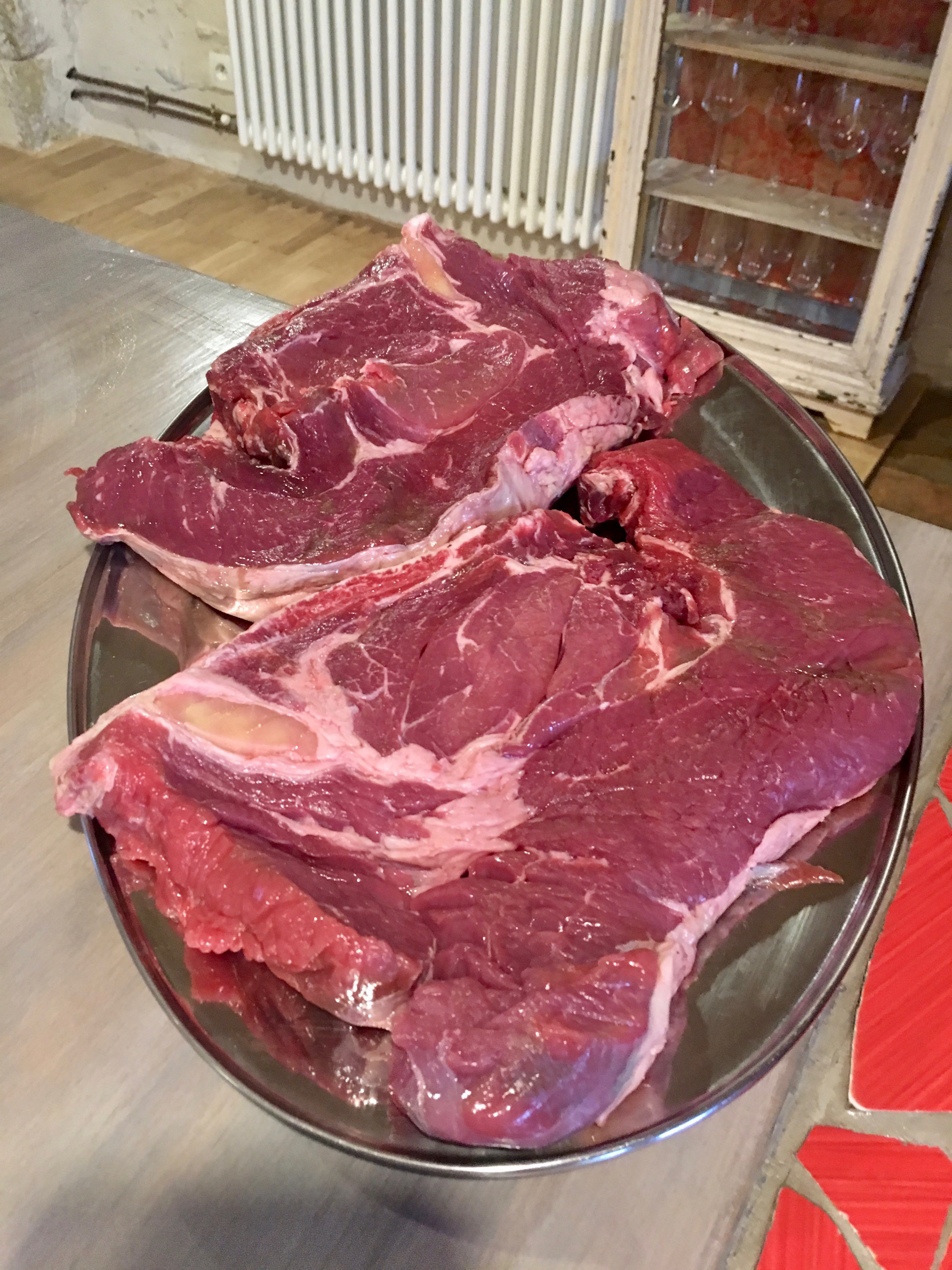Bazas steak which Julien cooked over the fire right in the kitchen.