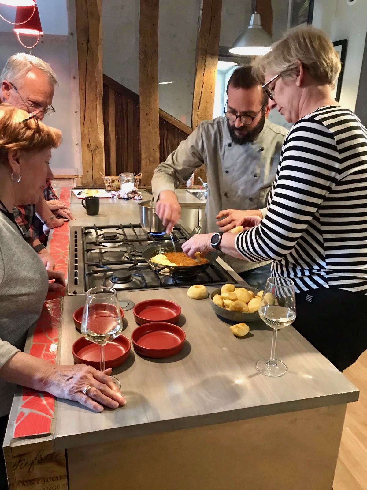 Then we were off for a tarte tatin class and a beautiful dinner of Bazas beef steak, a wonderful salad and vegetables. Once again, Julien outdid himself.