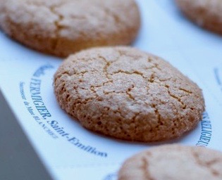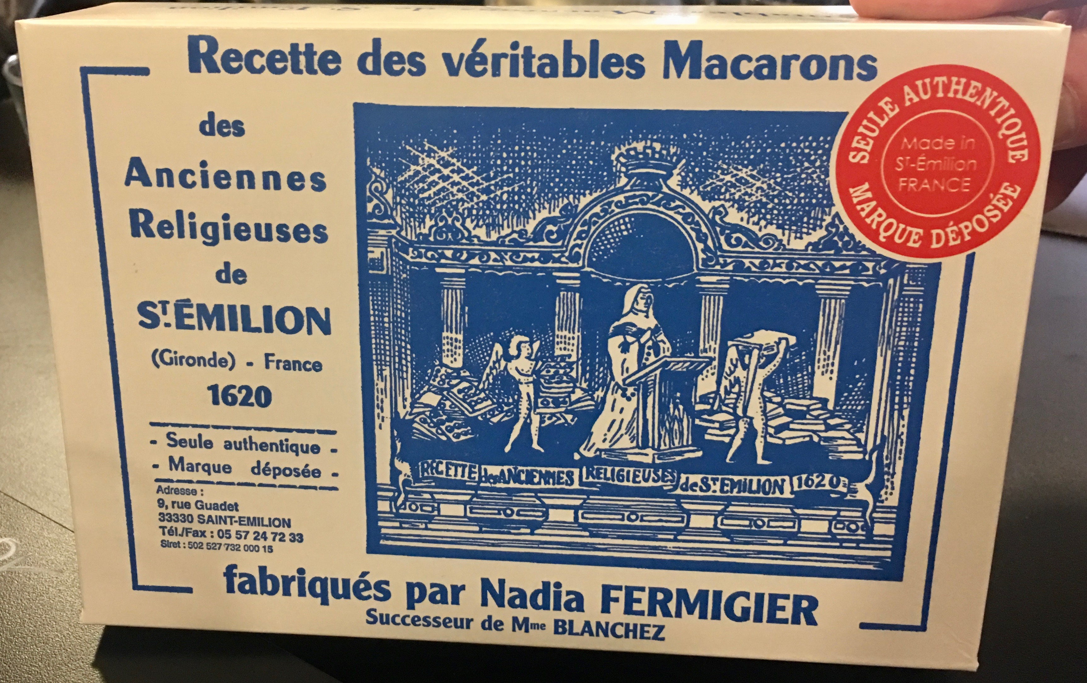 Then we had a special treat. The very special macarons of Saint-Emilion. The macaron is, after the wine known to all, the other specialty of Saint Emilion. It is manufactured there in 1620 by a religious community, the Ursulines. The recipe will then be transmitted to a few families, generation after generation and always kept secret. Today, Nadia Fermigier, who succeeded Madame Blanchez, is the only repository of the real recipe dating back to 1620. The typical macaron has a filling but these are a single layer. The have an almond taste and are wonderful with champagne!