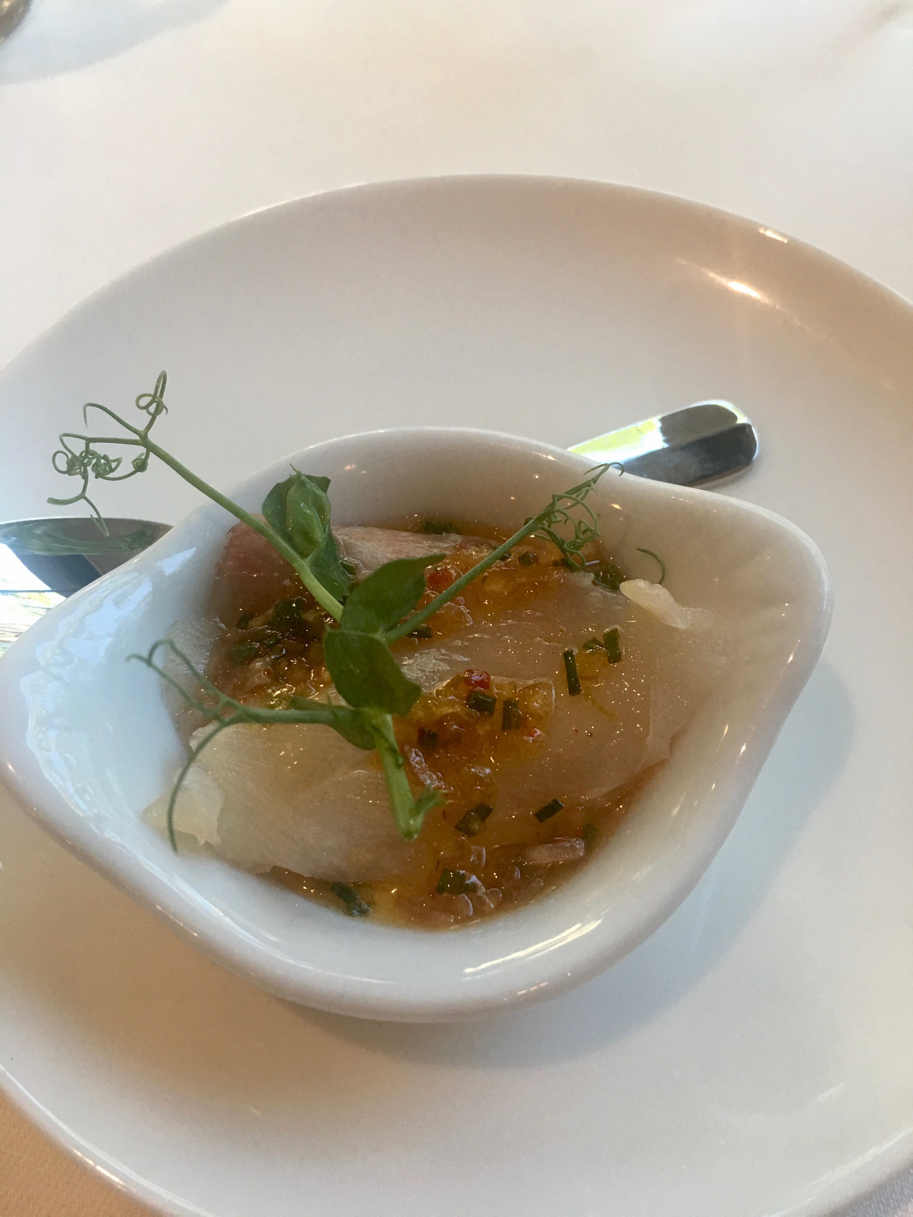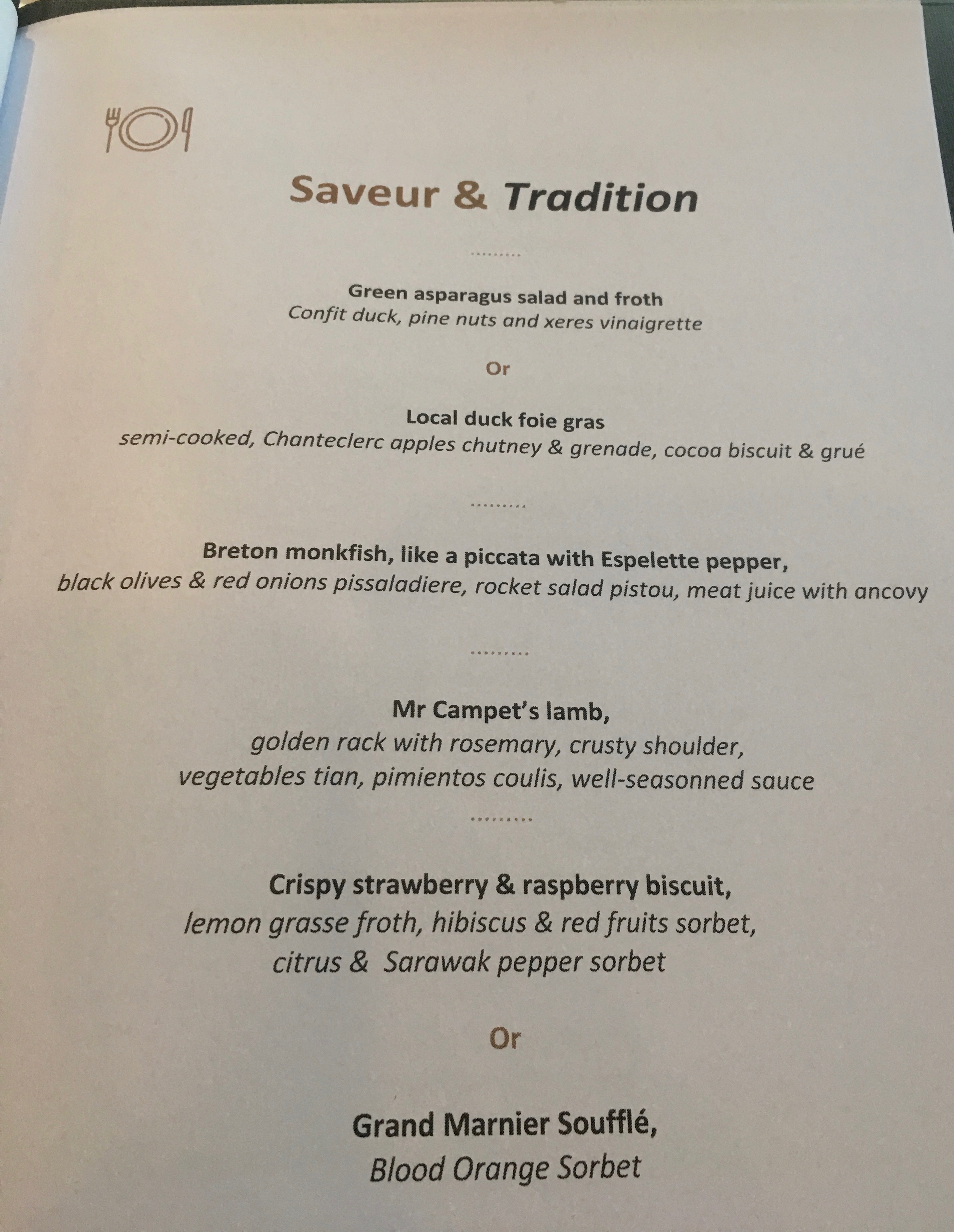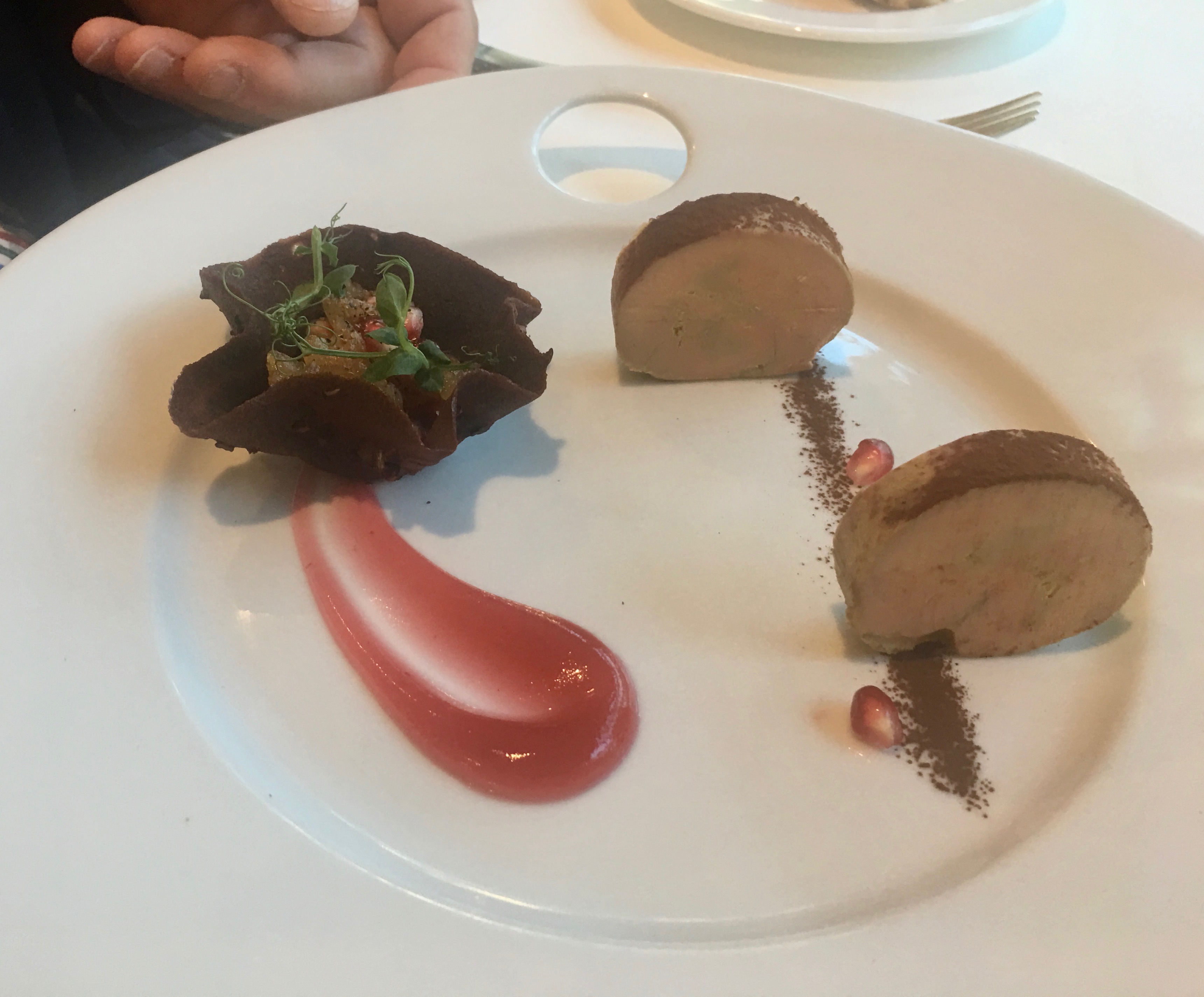 Above is the three course tasing menu that we had. Scott had one option and I had the other. However, you just don’t get the three courses, you get an amuse bouche and a mini dessert too! The meal was absolutely delicious, so creative and fun.