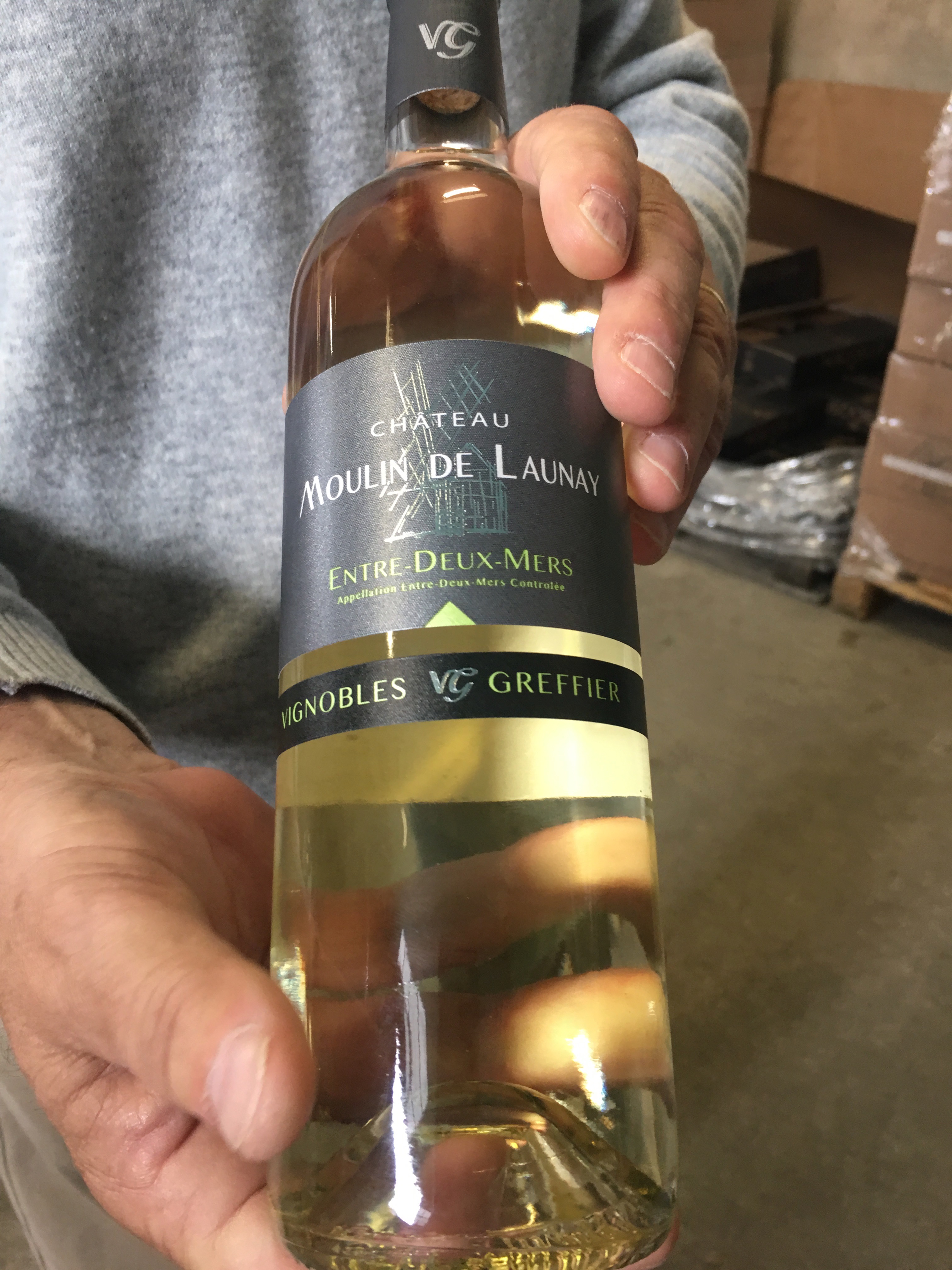 Chateau Moulin de Launay has been producing wines for more than 150 years and for 5 generations. Vignobles Greffier has an exclusive production of dry white wines that make it a specialist thoughout Bordeaux. Ludovic said that they have 74 hectares and they want to keep this specialty by diversifying their grape varieties. So far they have six varieties: Sauvignon Blanc, Sauvignon Gris, Semillons, Mucadelle, Ugny Blanc and Colombard. They are located around the highest point of the Gironde which has always been in the family. Currently his wines are a blend the all of the varieties but this year he will be producing a single variety using Ugny Blanc. He is very creative in his wine making process.