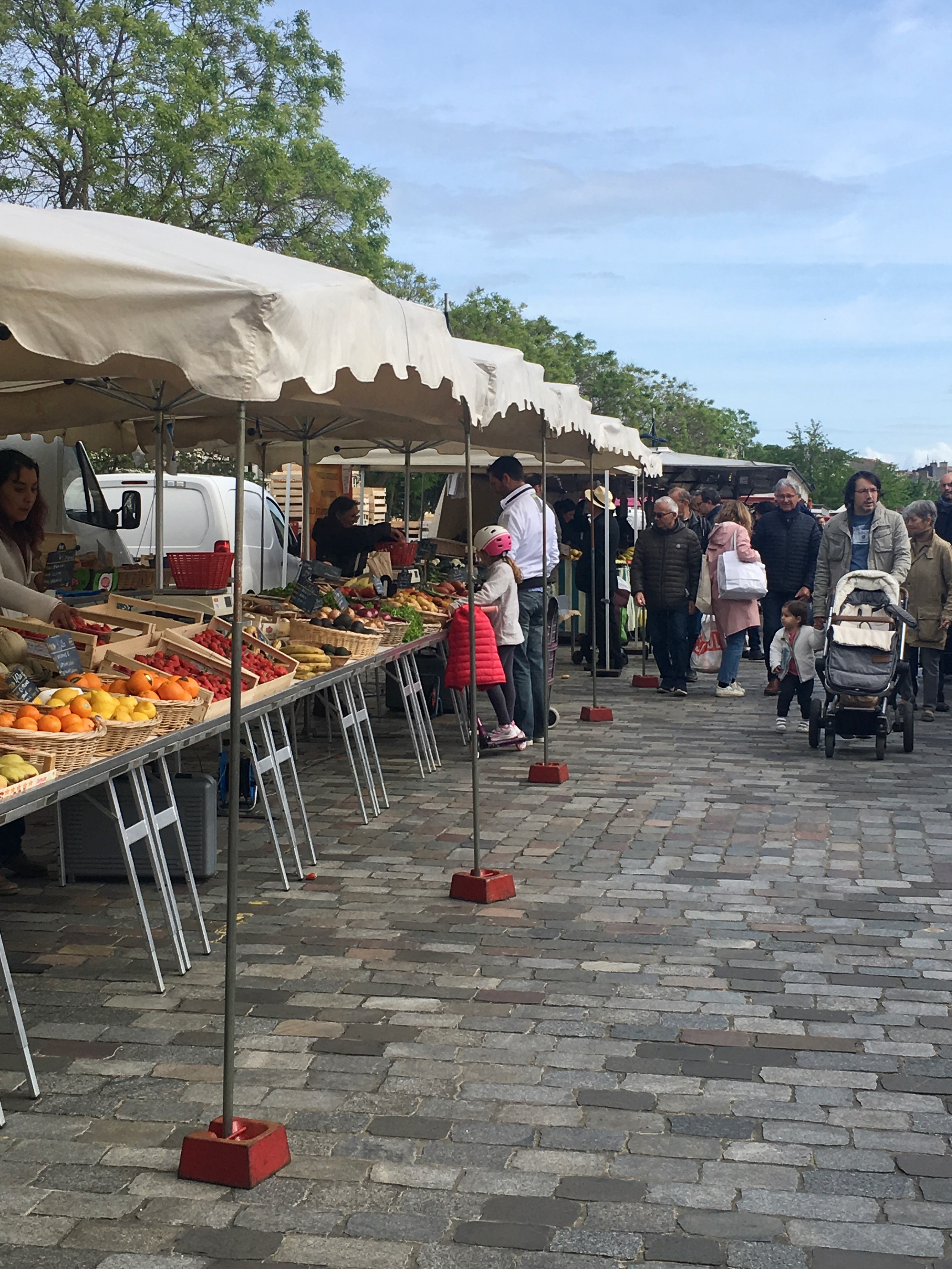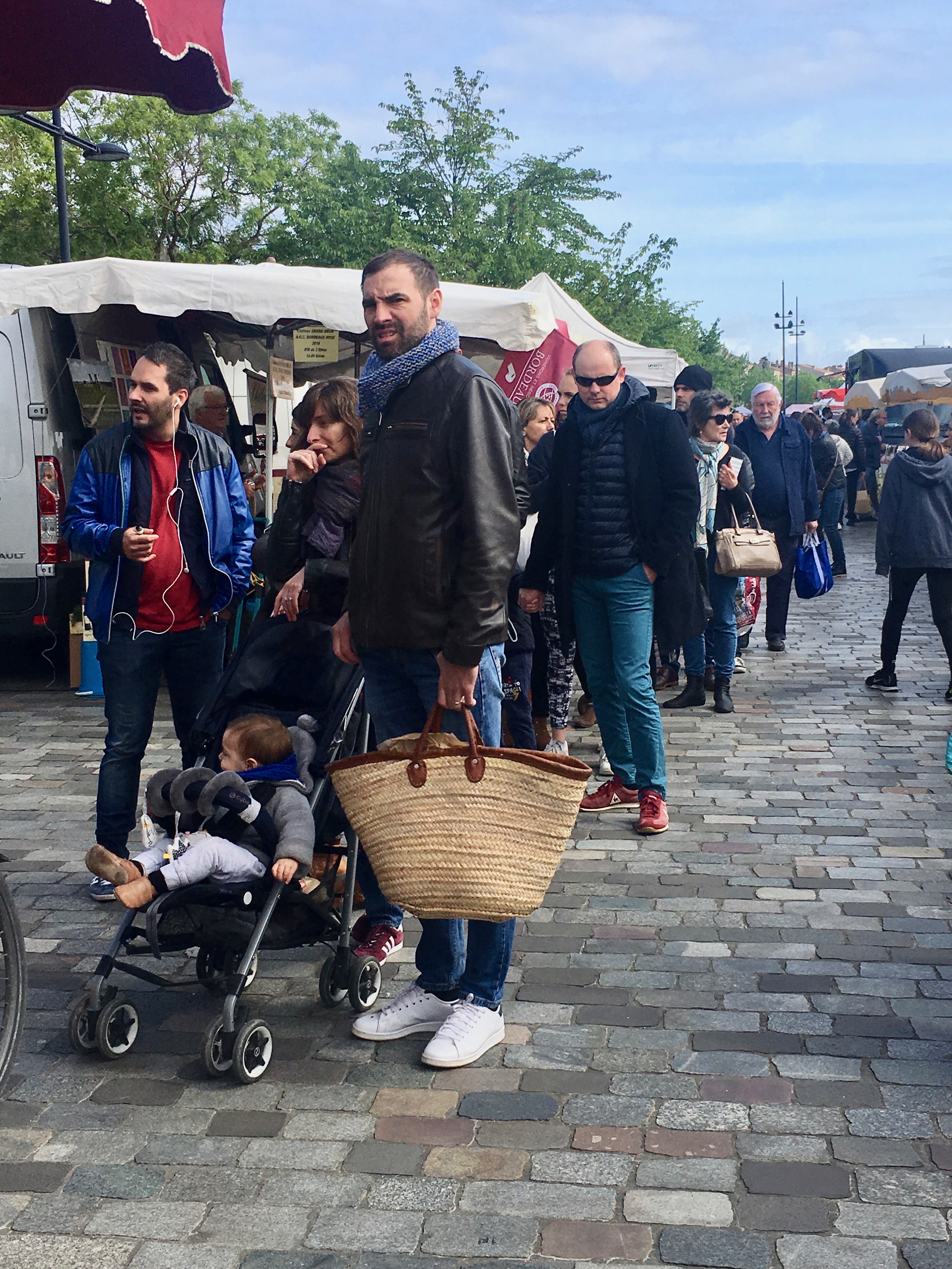 We were going to Bordeaux to go to the Centre National Jean Moulin, to visit the wine museum, to go to yet another market, to have lunch and to see the sights in Bordeaux. A pretty aggressive schedule. We got to the Bordeaux train station and then had to find the tram. Fortunately the signs were good and we got a pass. They have a wonderful tram system. We first wanted to go to the market but we got off at the wrong place but walking felt good.