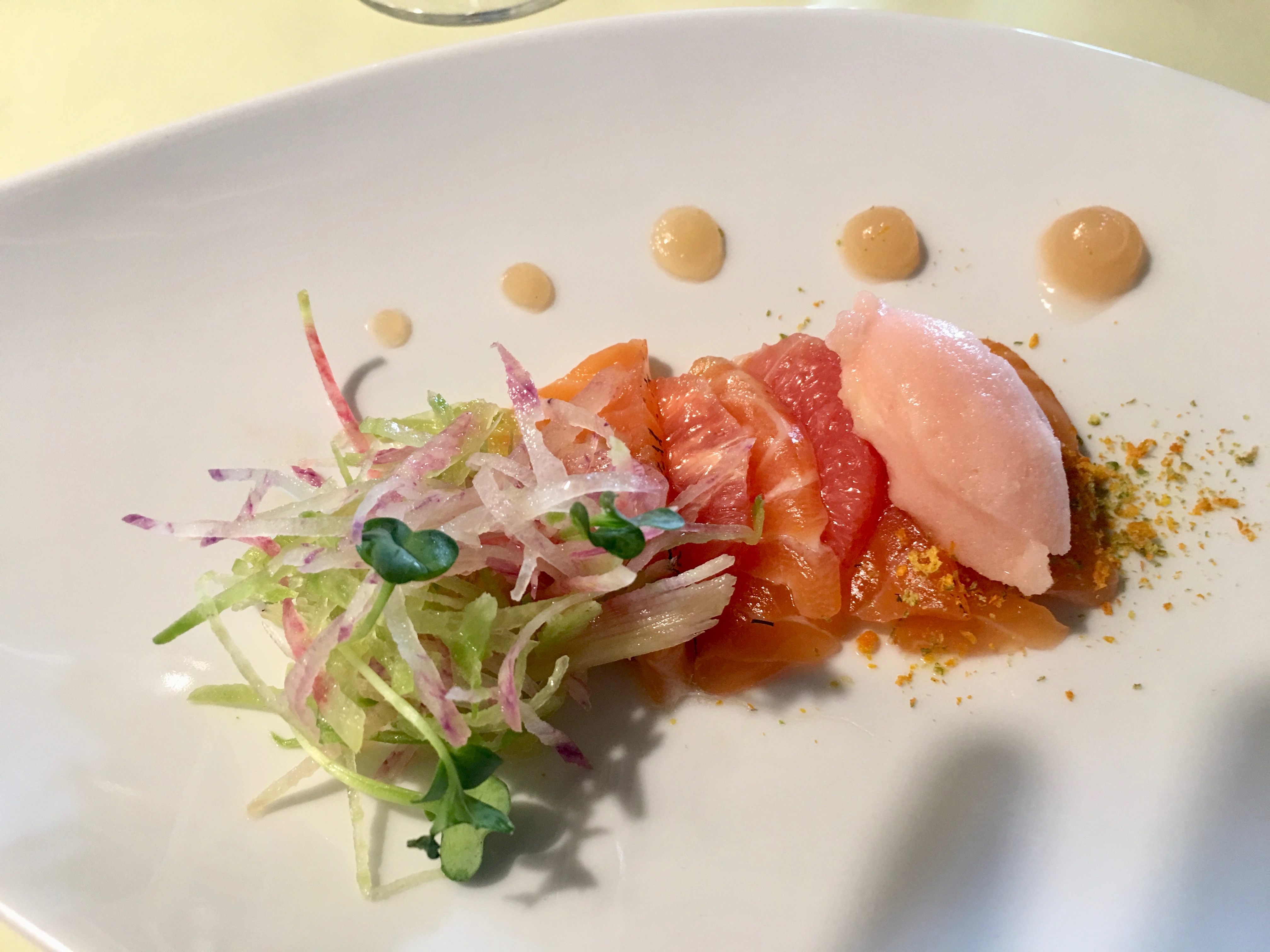 Carpaccio of salmon with grapefruit sorbet