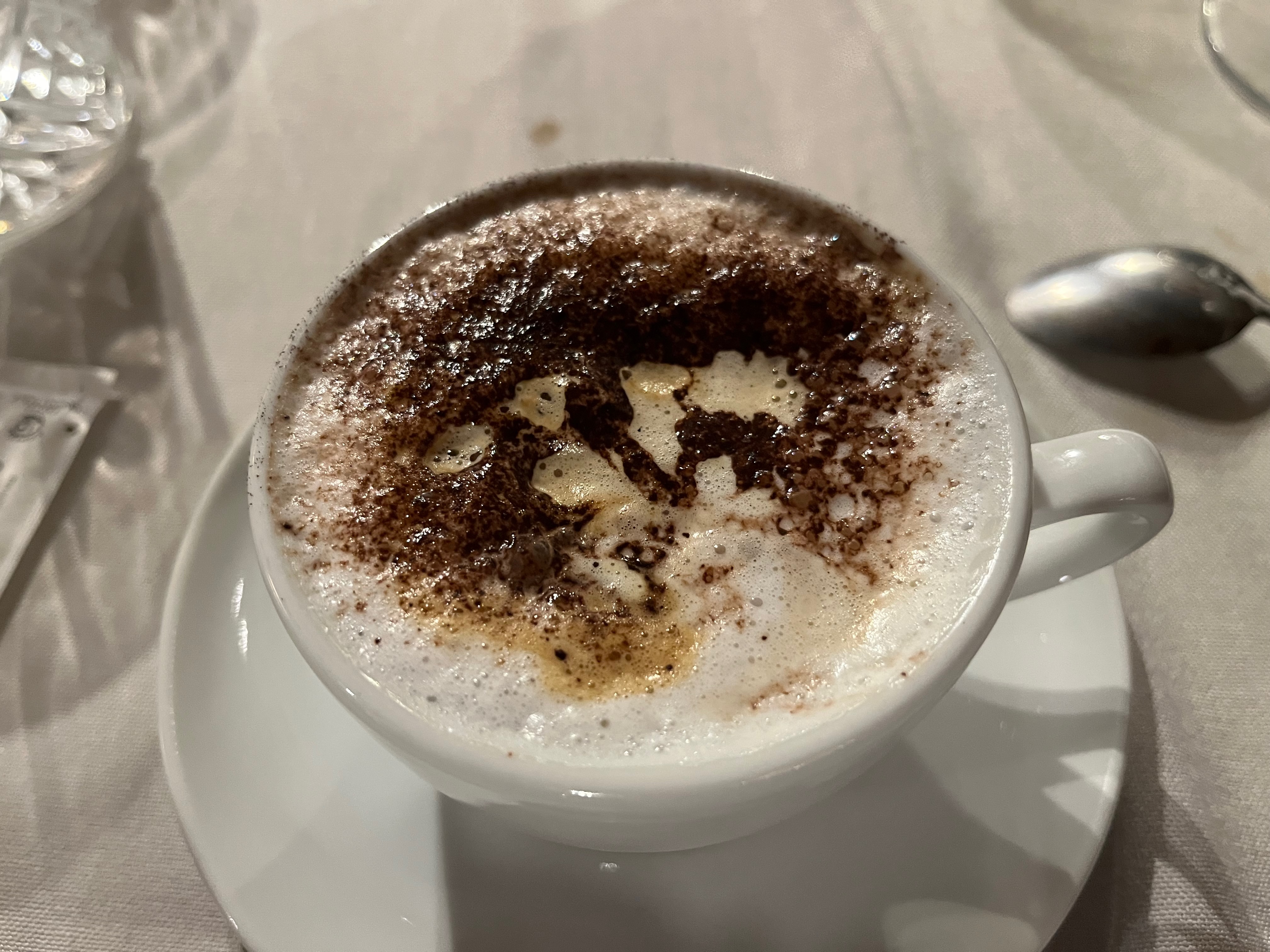 According to Tom, we had to have dessert! The lemon tarte was tart and delicious and the lemon sorbet added a great flavor. My cappuccino was excellent. We had about 1/3 bottle of wine so instead of trying to take the metro we took a cab. Brilliant idea!