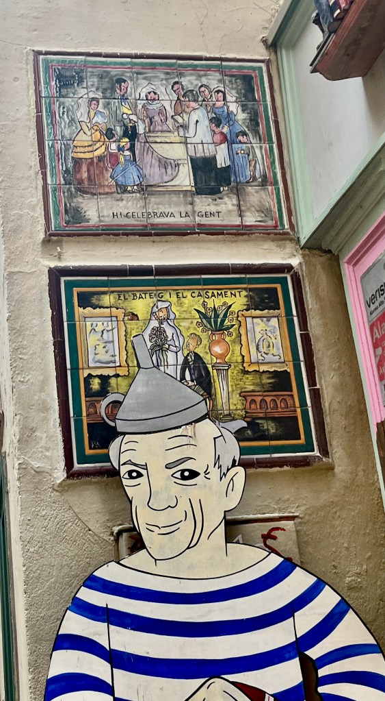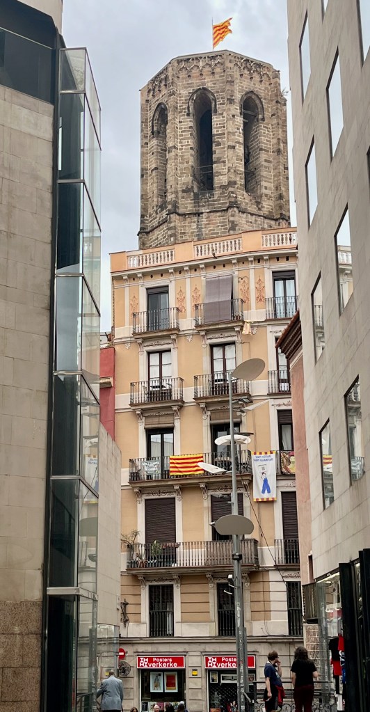 We met Rosa in front of the Olivia Plaza Hotel at the Catalunya Square. We found out it’s not always easy to follow Google maps on my phone, back and forth until we found the square. This is the Catalunya region of Spain. They have a separate flag and language. Rosa lives in a neighborhood within the City of Barcelona similar to my Fulton neighborhood in Minneapolis. When she was young her mother would always say “we’re going to Barcelona” when they already lived there. She also explained that when she was in school they taught Catalan but her mother learned Spanish. The languages are similar but not the same. We observed this in many of the signs, menus and other postings around. During Franco’s dictatorship (1939–1975) the use of Catalan was banned in schools and in public administration.
