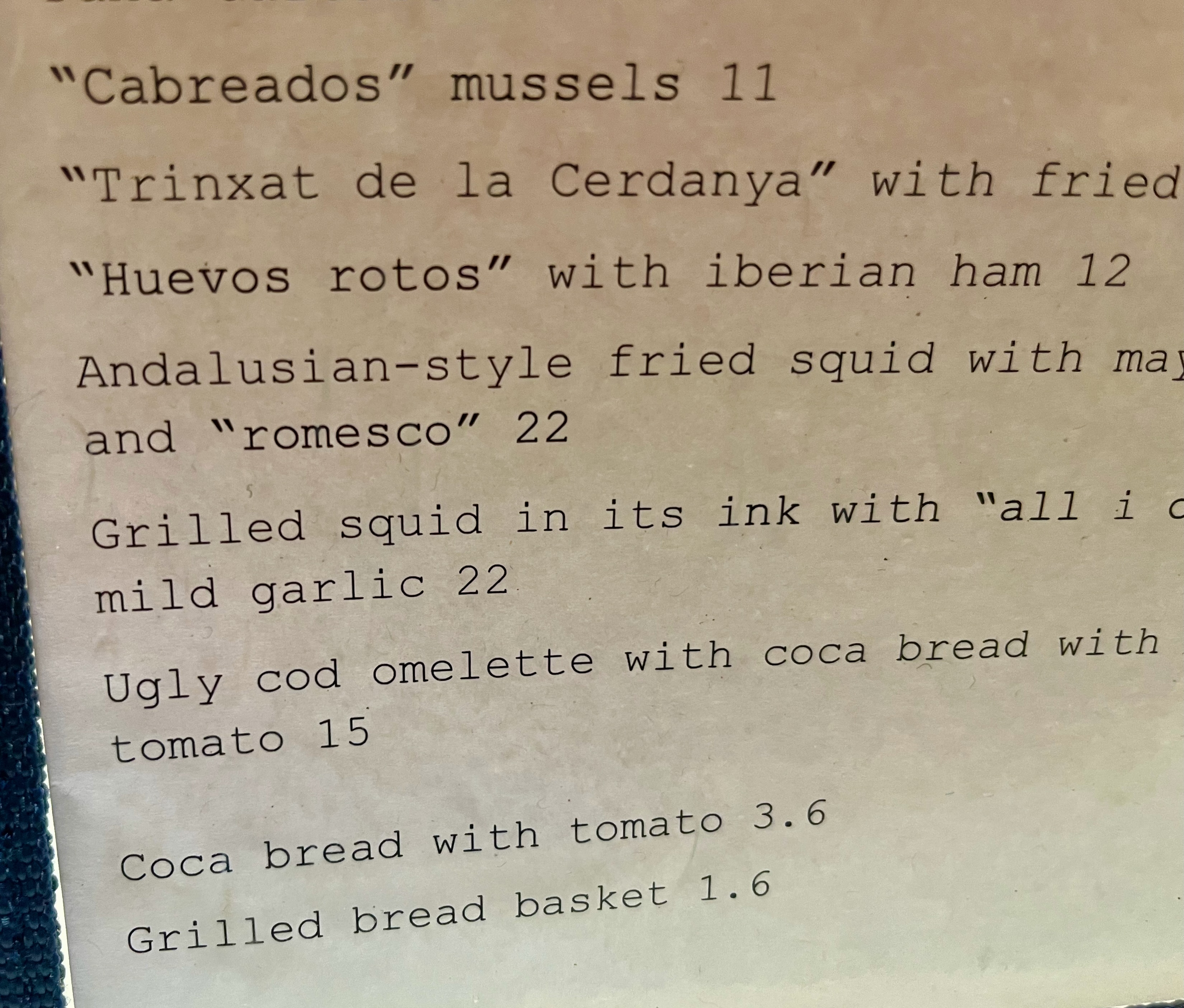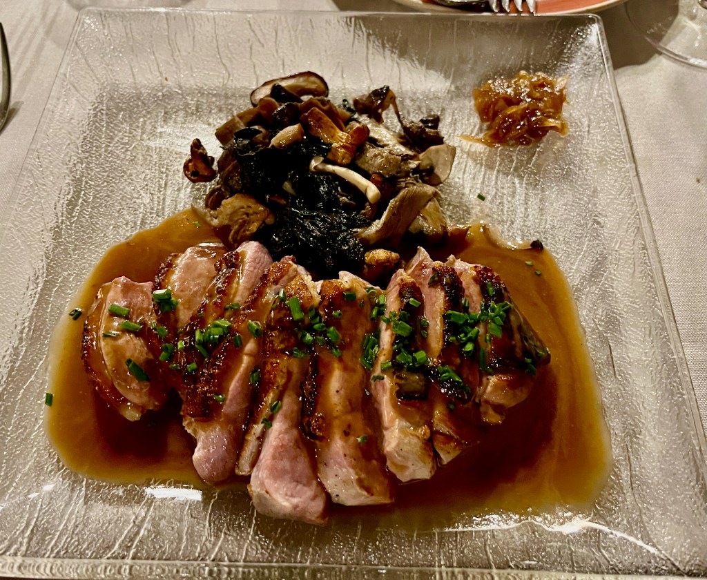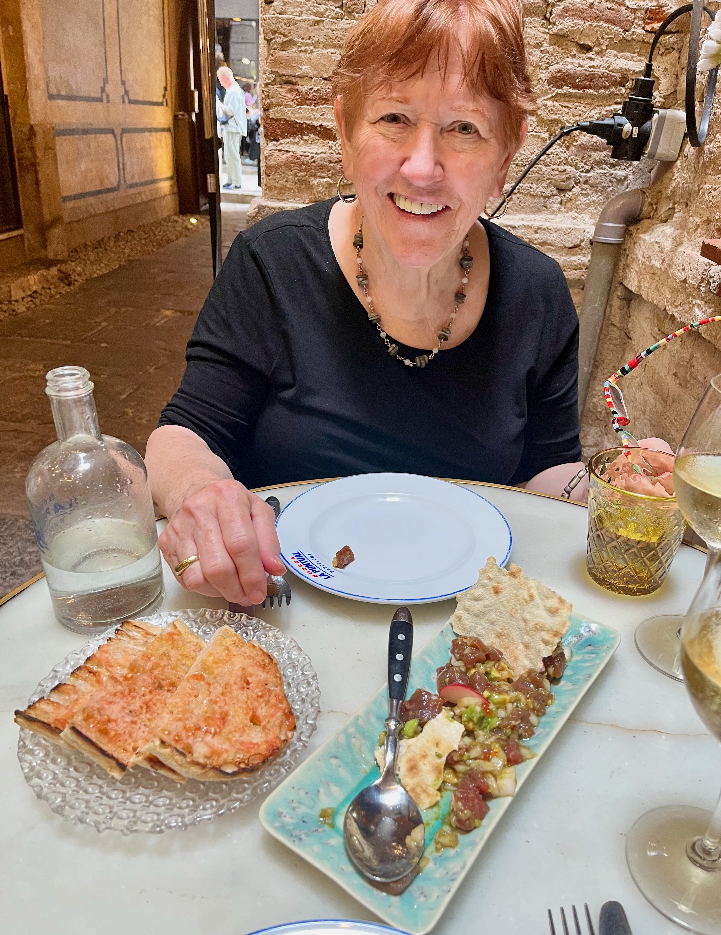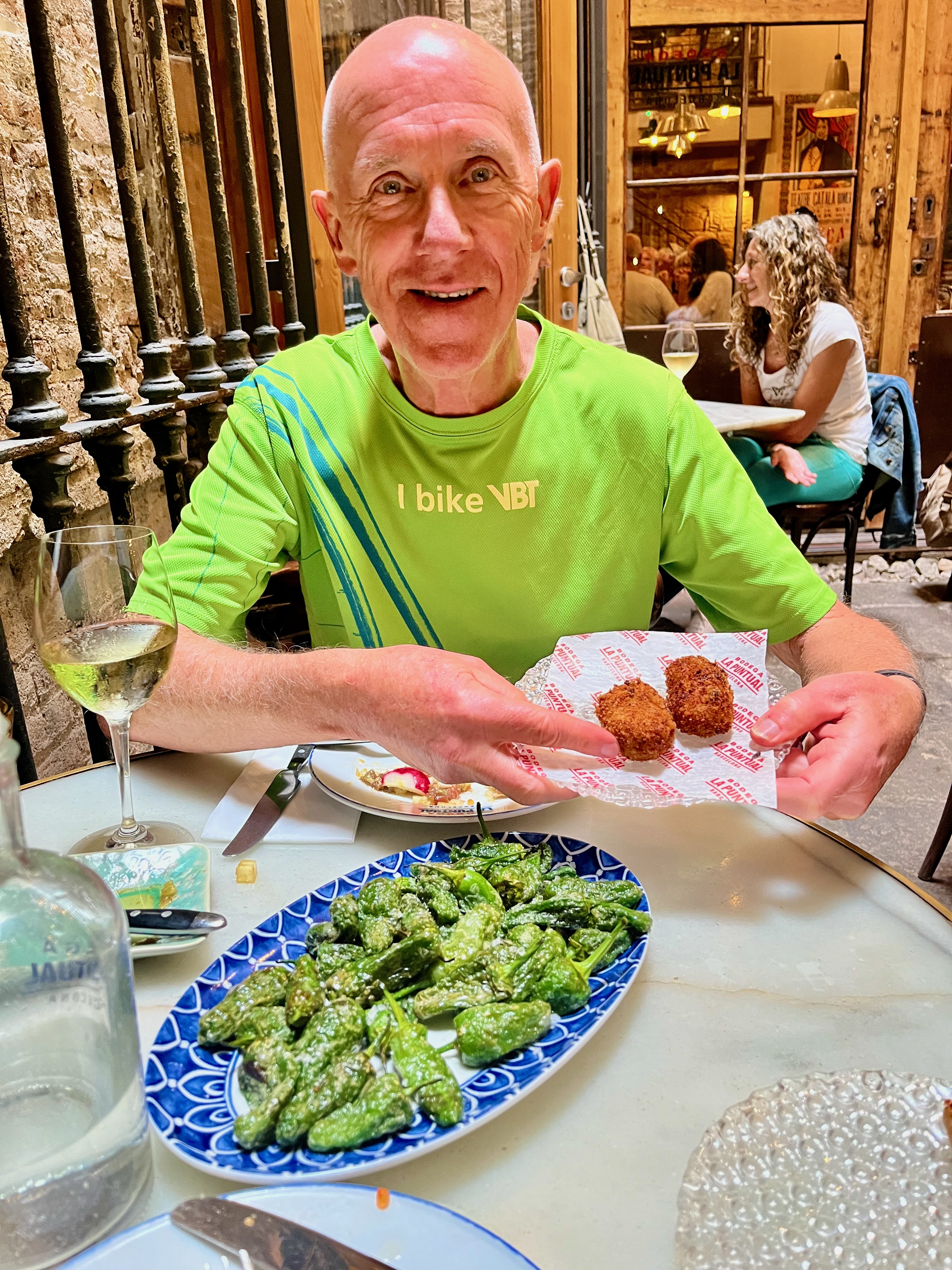 We had the tuna tartare (excellent), bread with tomatoes (this was popular and we found it everywhere but it was not great), Iberian ham croquettes (still not our favorite) and Padron peppers (tasted great until Mary bit into one and it was burning hot!) Padron peppers are small and the taste is mild (except the one Mary got). They were grilled and sprinkled with salt.