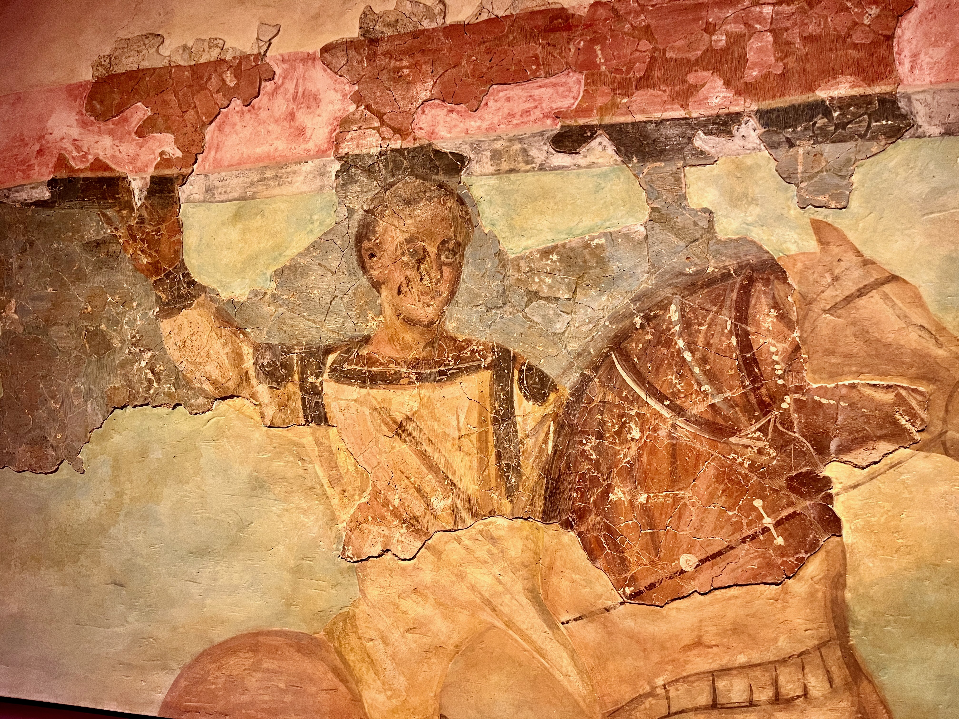 How weaving was done and a mosaic of a charioteer.