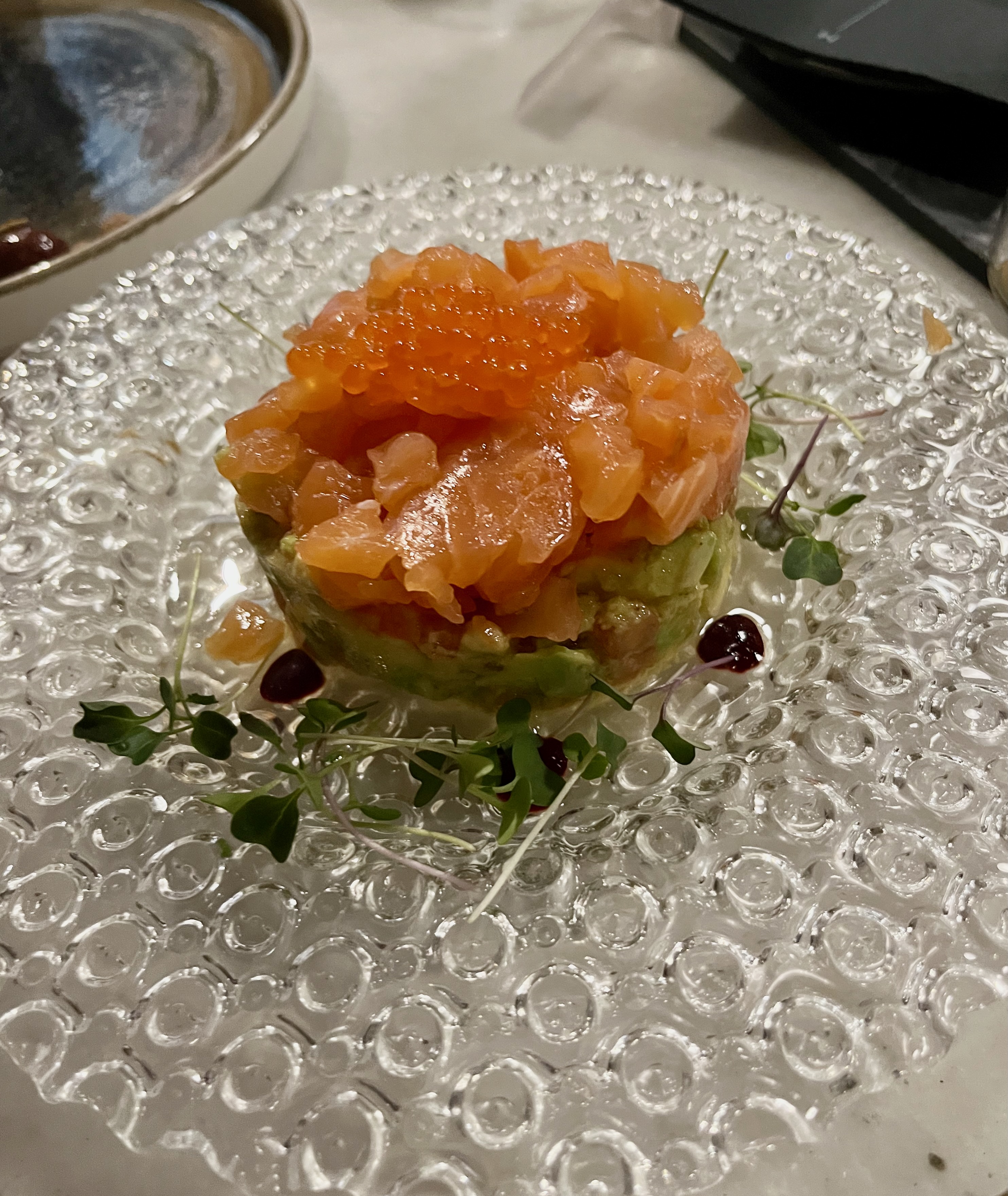 First course an assortment of olives and then salmon tartare over avocado with roe. I am not a fan of olives but the salmon tartare was good and the avocado added a great flavor.