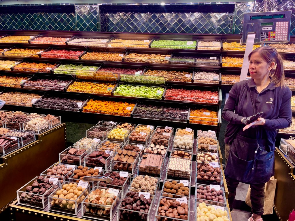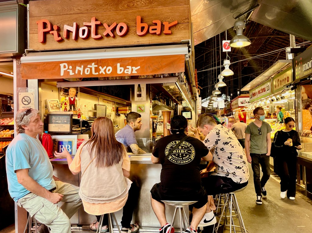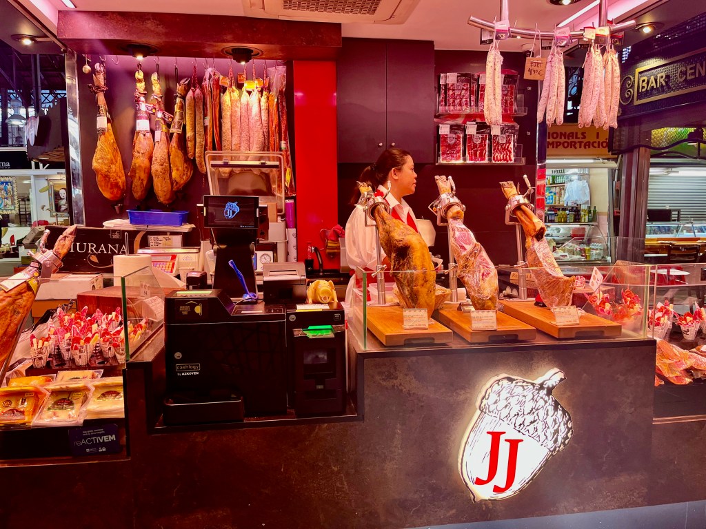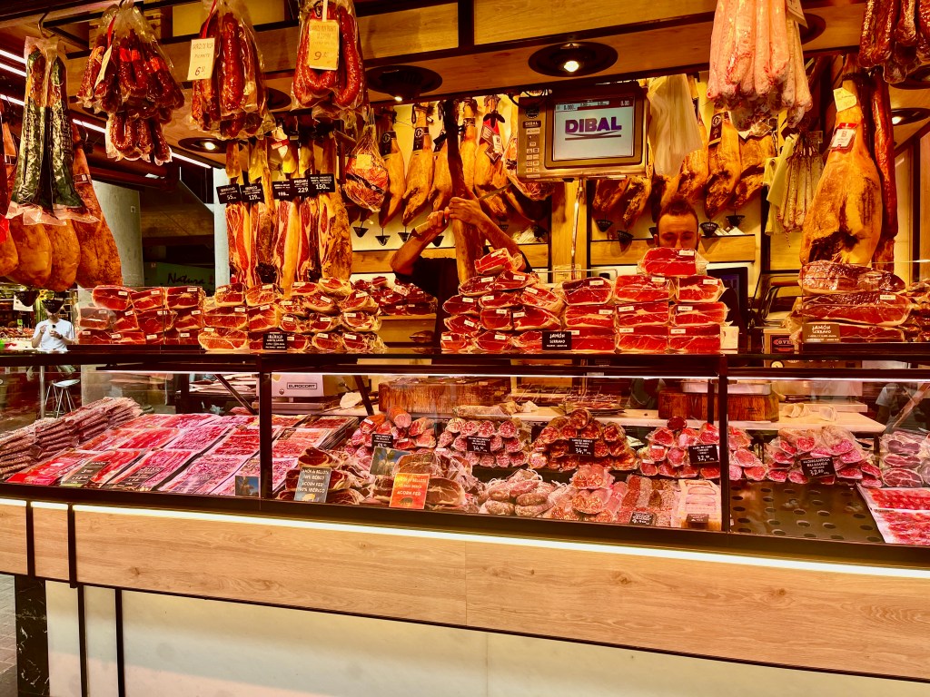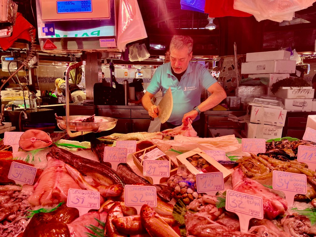 One of the first places you notice is the Pinotxo Bar. It is just inside the market, under the sign and a snap of a photo of animated Juan. He and his family are always busy feeding shoppers. Getting Juan to crack a huge smile and thumbs-up for your camera makes a great shot and he loves it. Unfortunately he was not there the morning we visited.