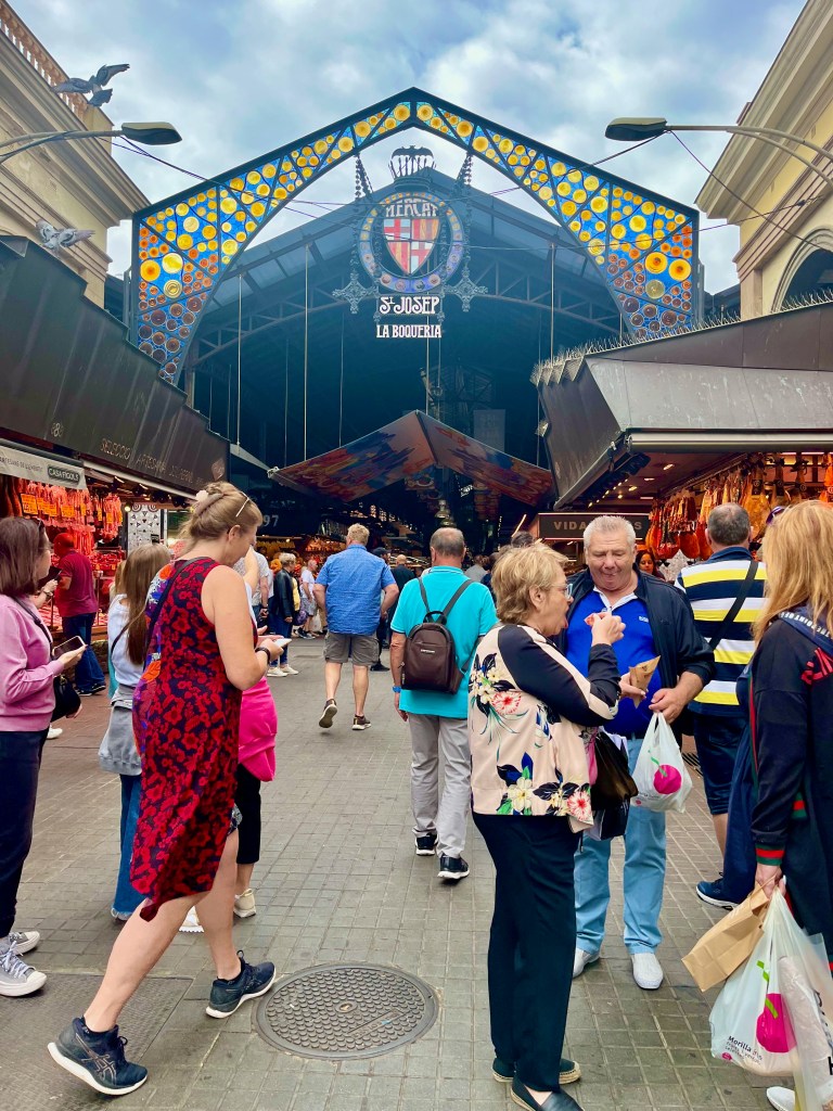 We set off for the La Boqueria Market, one of the most central and most crowded markets. It is just off of La Rambla. We walked by it on Saturday when we were with Rosa our guide. As you know from my trip to Bordeaux I love markets so I was really excited to see this one.