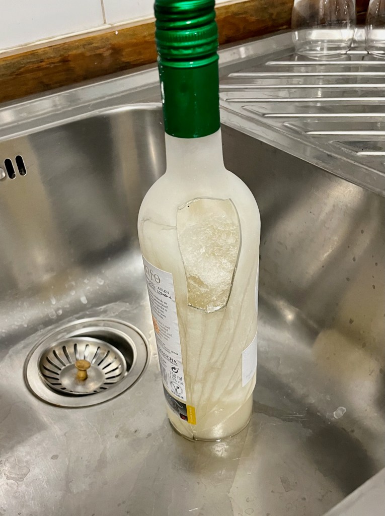 I was packing and decided I wanted a glass of wine. We had purchased a bottle of wine the afternoon before and since it was warm I had decided to put it in the FREEZER!!!! Ykes, it was still there. Glass all over the freezer drawer. No wine for me.