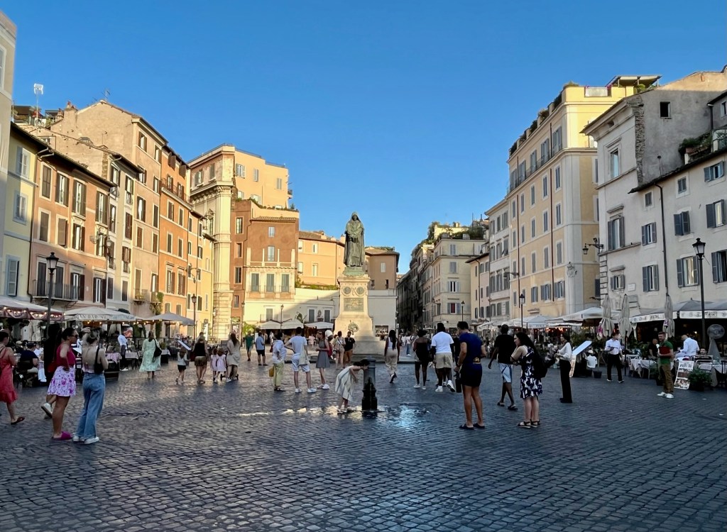 In the center of the market is a Statue of Giordano Bruno.