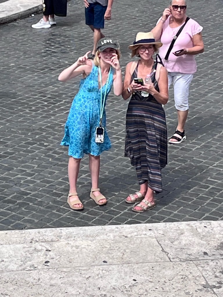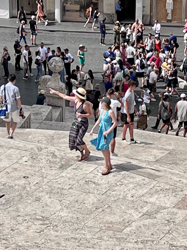Little did we realize it was a church so of course Beth, Kate and I were not “appropriately” dressed (bare shoulders). So “luckily” there was someone selling scarves and we negotiated a good price. Shortly after we purchased them the vendor was driven off by the Polizia.