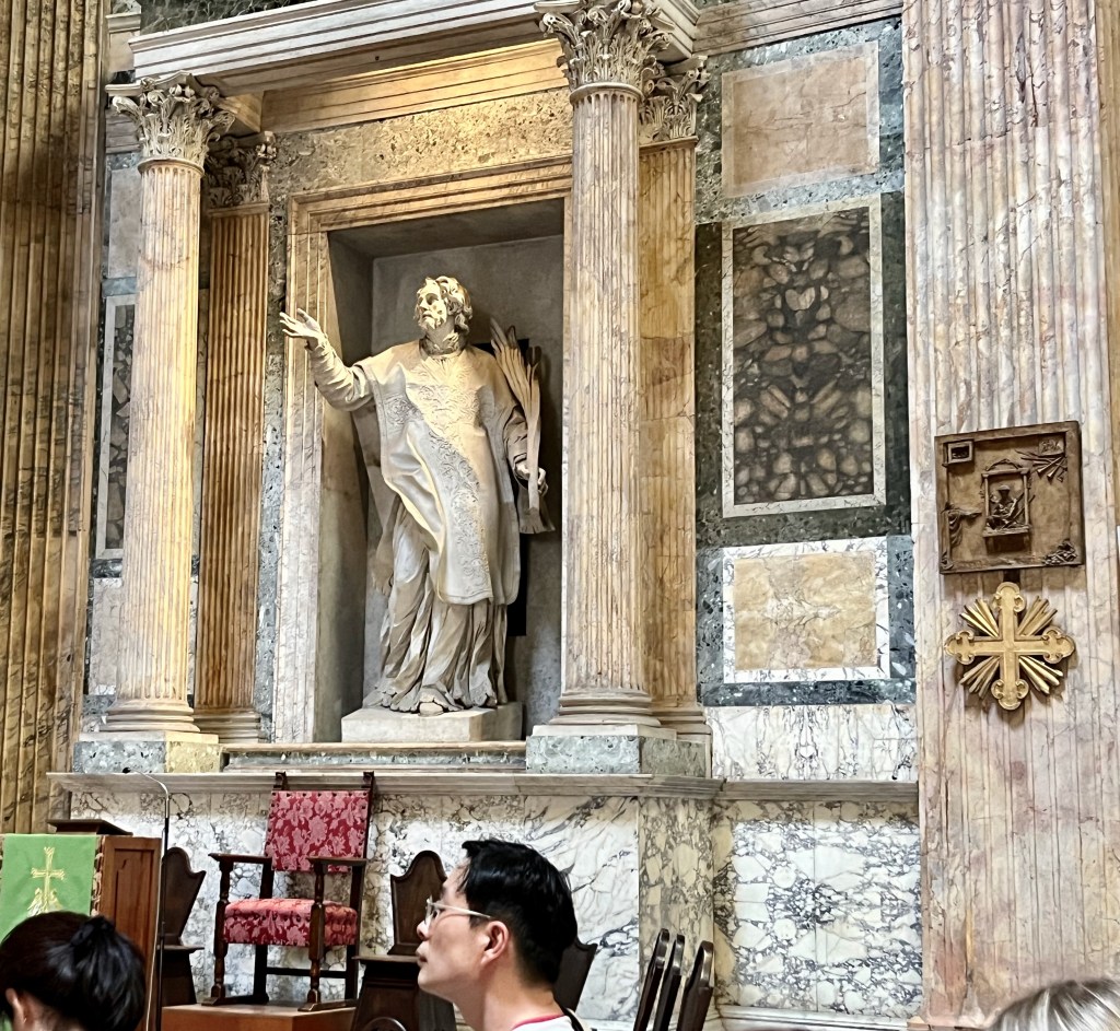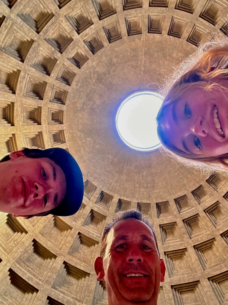The Piazza in front of the Pantheon is called the Piazza della Rotonda. Fortunately Glenn got tickets the night before so we wouldn’t have to stand in line. This Piazza holds special memories for me as it was a place Scott and I visited on both of our trips to Rome. On the first trip there was a MacDonalds and we saw a man with a sack of burgers and bottle of wine sitting at the fountain and enjoying his lunch. Both times we ate at a restaurant here.