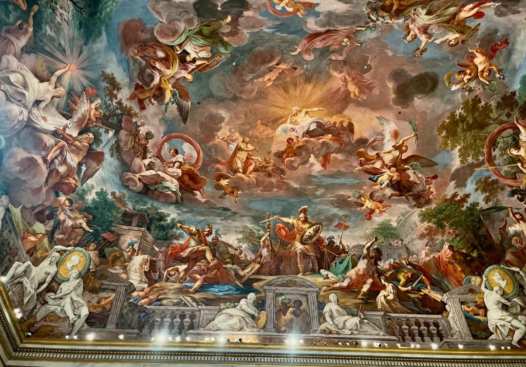 This ceiling below is by Mariano Rossi and depicts Camillus in battle while Romulus pleads with Jove.