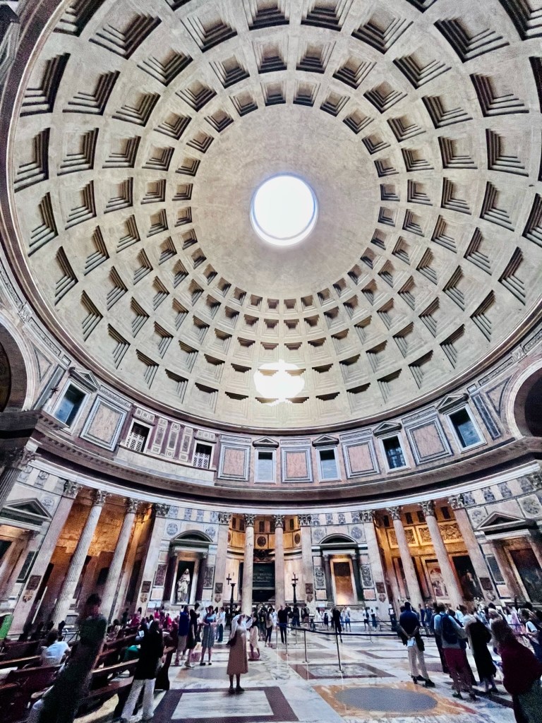The Pantheon is a magnificent structure. It was built by Hadrian on the site of an earlier temple about 126 AD. And in 609 AD it became a church. Personally, I always like to hear about Hadrian and his constant travels to all parts of the Empire. He build Hadrian’s wall which marked the northern limit of Britannia which I was lucky enough to see parts of it when I was in England.