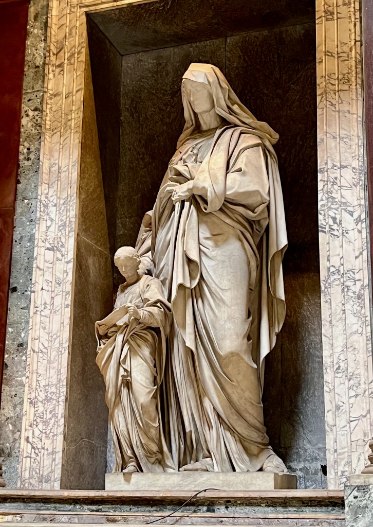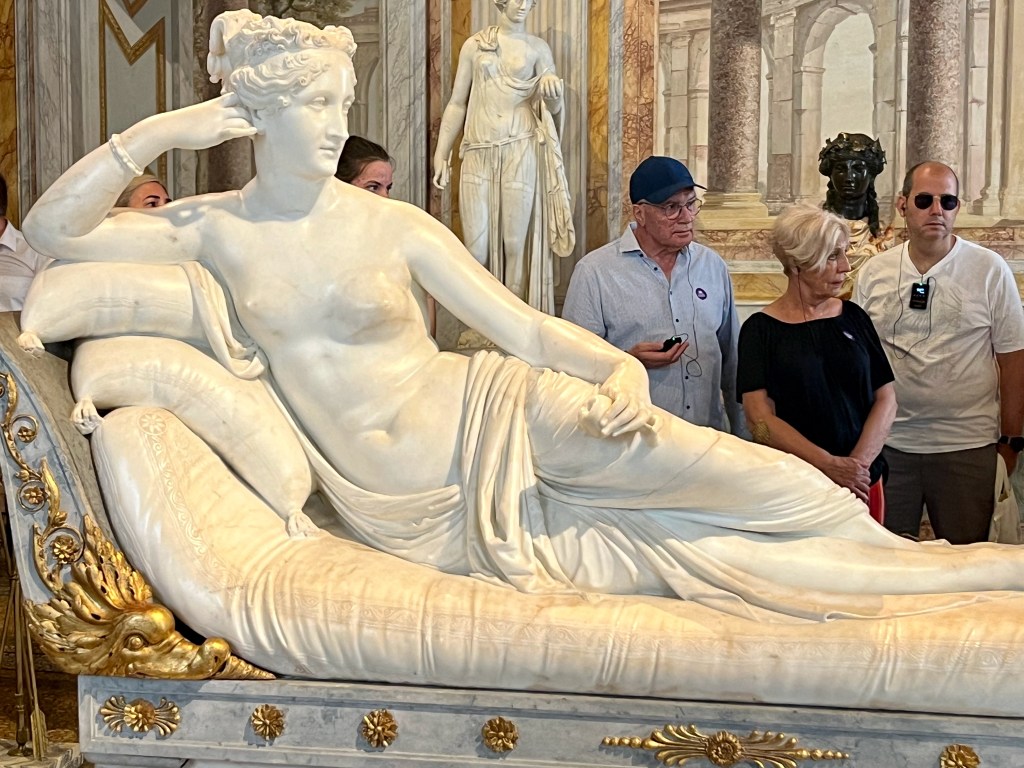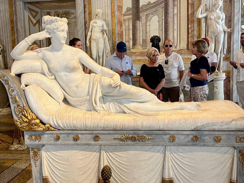 Pauline Borghese was Napoleon’s sister and a beautiful sculpture by Bernini is one of the most famous of the collection. In 1807, Prince Camillo Borghese was strong-armed by his brother-in-law, Napoleon Bonaparte, into “selling” him hundreds of works from the family collection. In all 695 pieces, most of the antiquities, sculptures, vases and reliefs were packed up and crated off to France. The Louvre has several of these pieces and when Scott and I were in Paris we visited the Louvre and saw them on display.