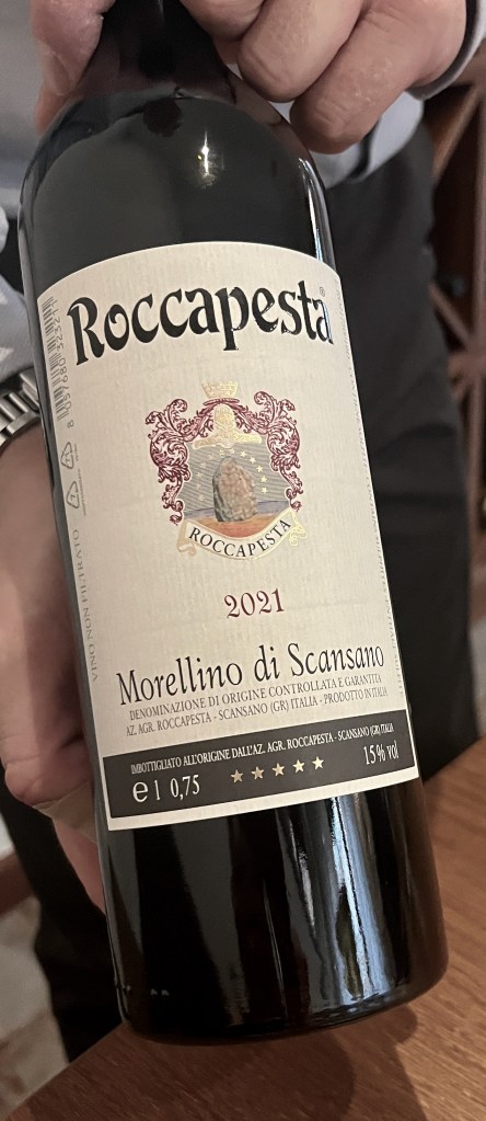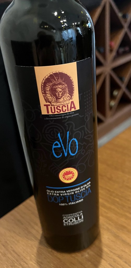 The first wine is a sparkling 70% Chardonnay and 30% Pinot Noir from Piemonte. We all got to sample this. The Second wine was a Tuscan Sangiovese that Glenn ordered just a glass and the third bottle is an EVOO.