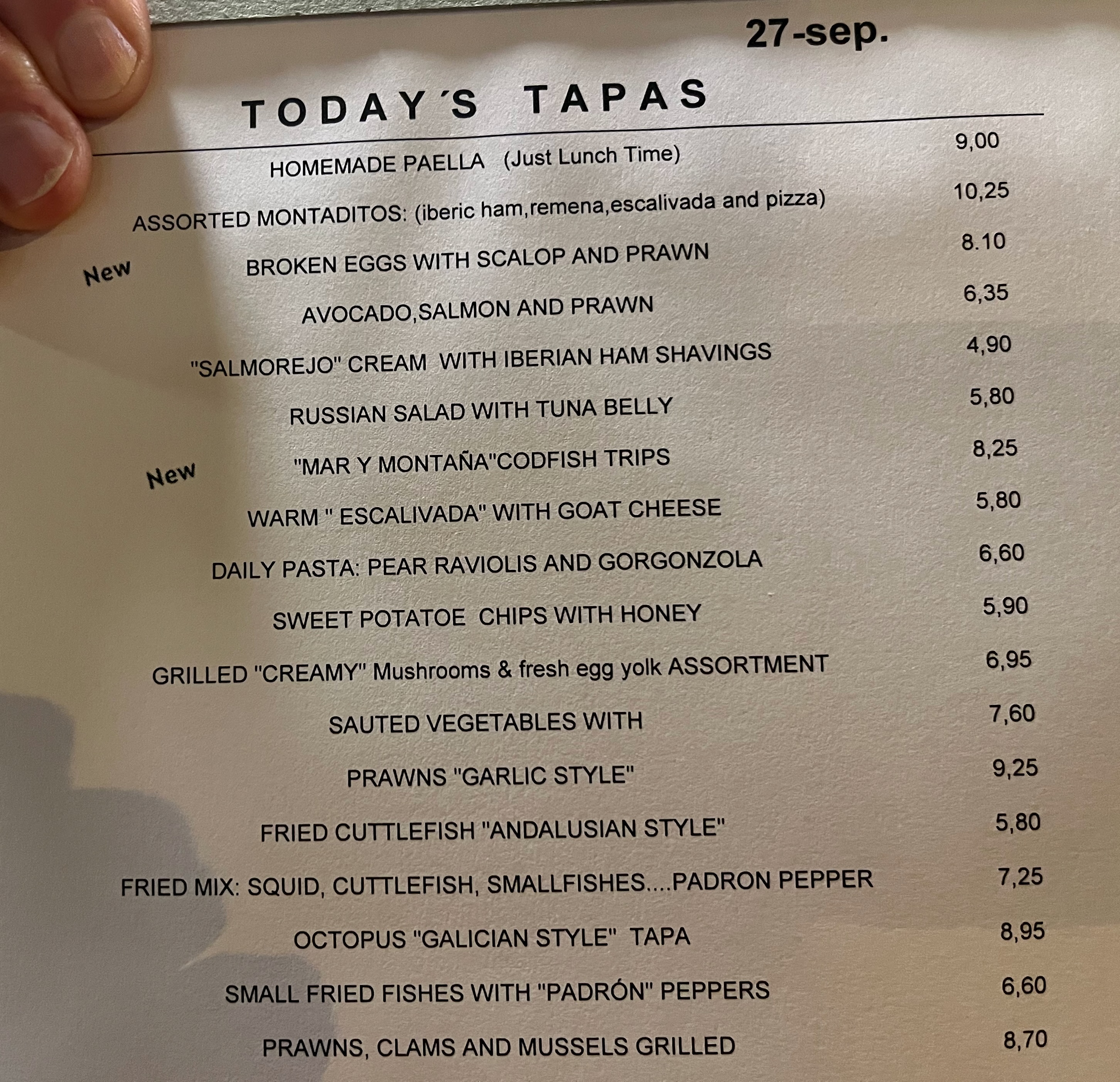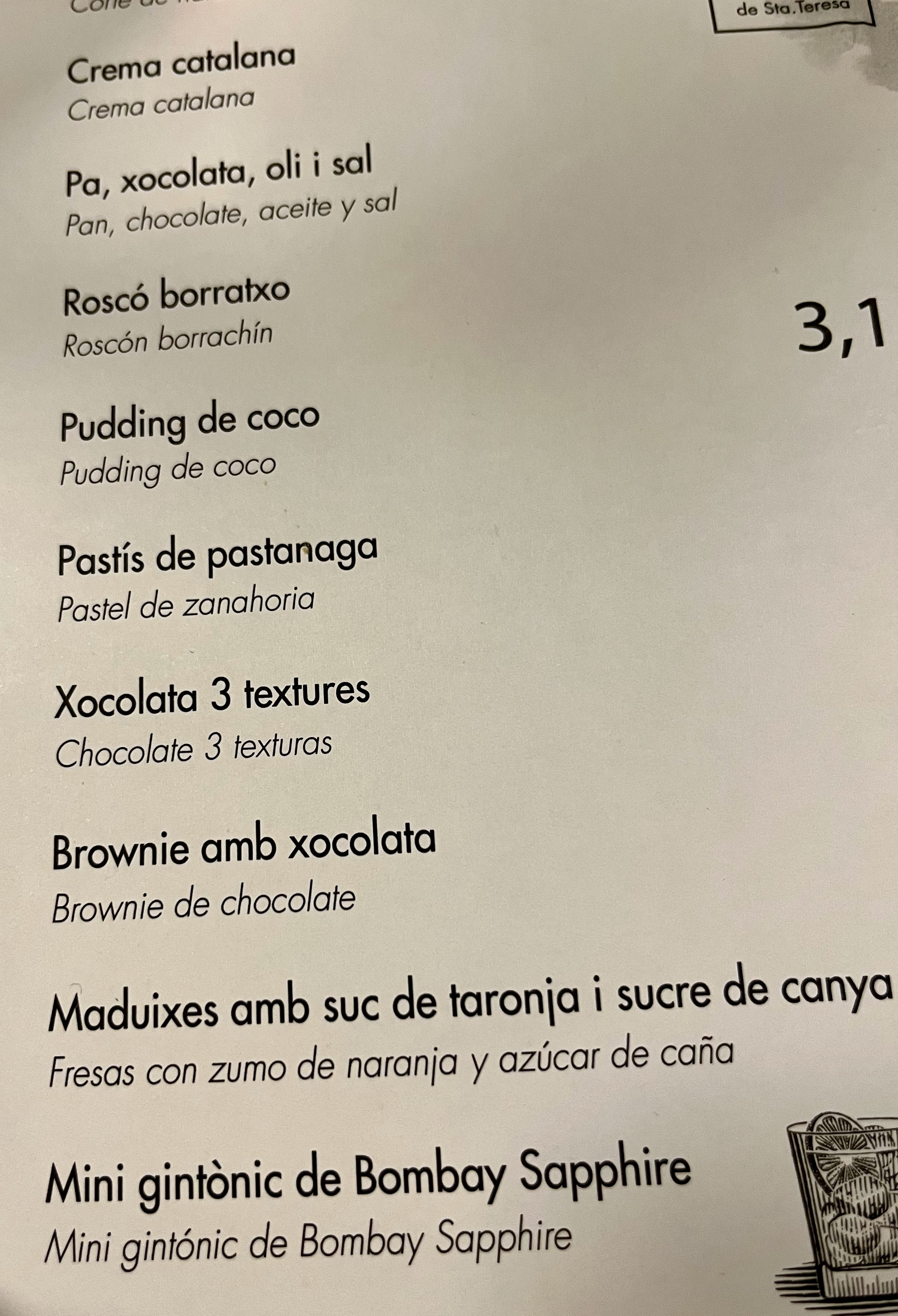 This is the dessert menu. Notice they are all 3,10 Euro/dessert!