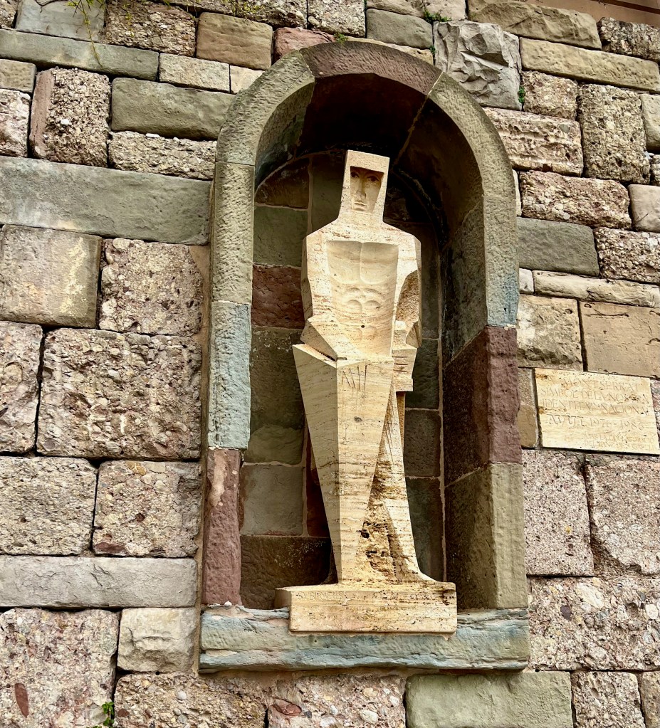 So we started down and looking in the book found the Sculpture of Saint George the patron saint of Catalonia with his sword and shield. We were told (in the guide book) to look at his eyes that seem to follow you when you move.