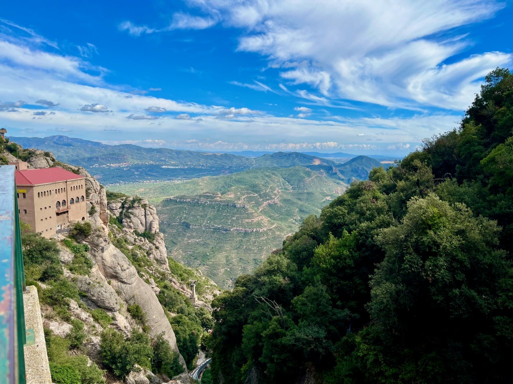 We arrived at the station in Montserrat and then found the cable car to go up to the monastery. I had never ridden on a cable car. Scott was terrified of heights so I am not sure he would not have done this.
